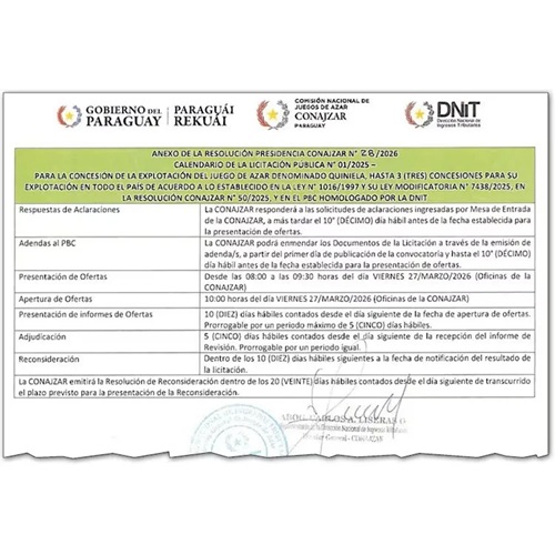 PARAGUAY - Pasa del monopolio al duopolio de la quiniela en la nueva licitación